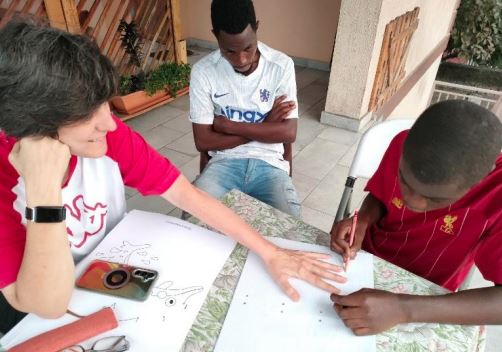 Il giorno, davanti ad una porta con un disegno ed una scritta in lingala: LIBOTA NA BISO (La Nostra Famiglia), ha inizio il nostro lavoro: conoscere i bambini e, attraverso varie proposte ed attività, capire le loro competenze e dare suggerimenti per delle possibili attività da svolgere in futuro.