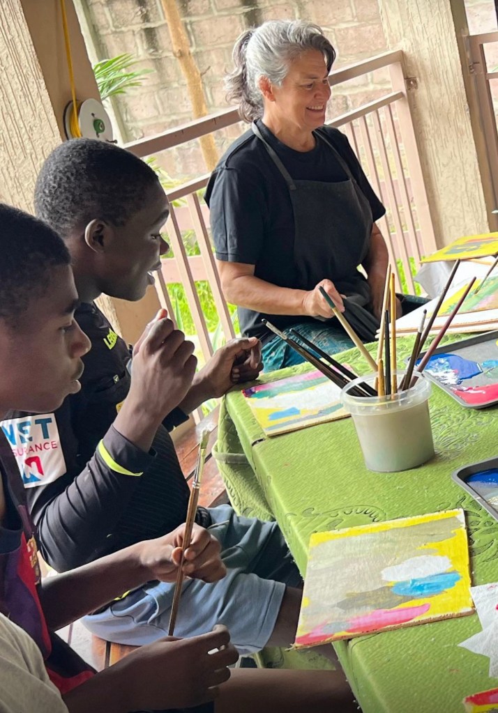 A gennaio ha vissuto qui con noi per due settimane Caterina, artista americana che da un po’ di anni vive in Italia e che conosce molto bene don Maurizio. Caterina si é molto impegnata con i nostri bambini, iniziando, insieme al nostro artista Dan, dei laboratori di pittura. Attualmente Dan sta portando avanti tutto ciò aggiungendo anche dei lavori con la creta, il gesso e in futuro la cera. Fra non molto saremo pronti a realizzare delle semplici ma molto belle bomboniere per matrimoni e battesimi (chi fosse interessato ci contatti!). Caterina inoltre si é resa disponibile per dei corsi d’inglese per i nostri universitari che erano interessati ad imparare una lingua che in Congo non é molto studiata (purtroppo).